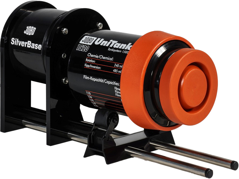 Kompaktowe urządzenie do rotajcyjnego wołania filmów. Zestaw w komplecie z koreksem JOBO 1520.