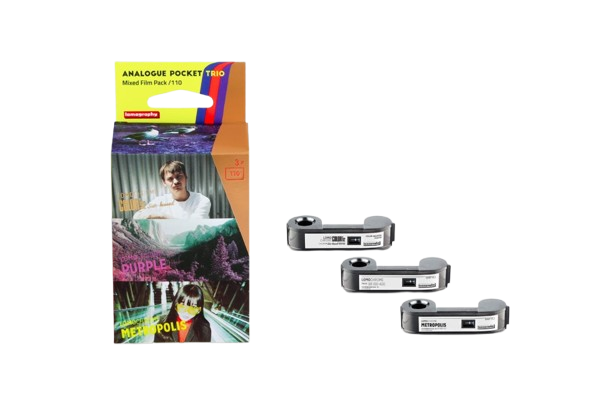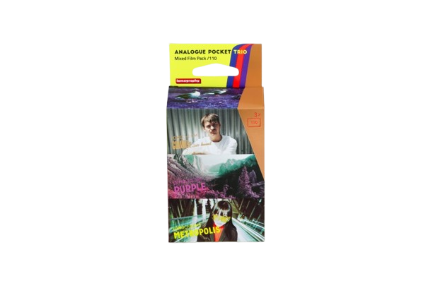 Wersja trójpacku zawierająca 3 filmy kolorowe typ 110 z kreatywnej serii: Lomochrome Purple, Lomochrome Metropolis i Lomochrome Color 92 Sun kised. Wszystkie filmy do wołania w standardowym procesie C41.